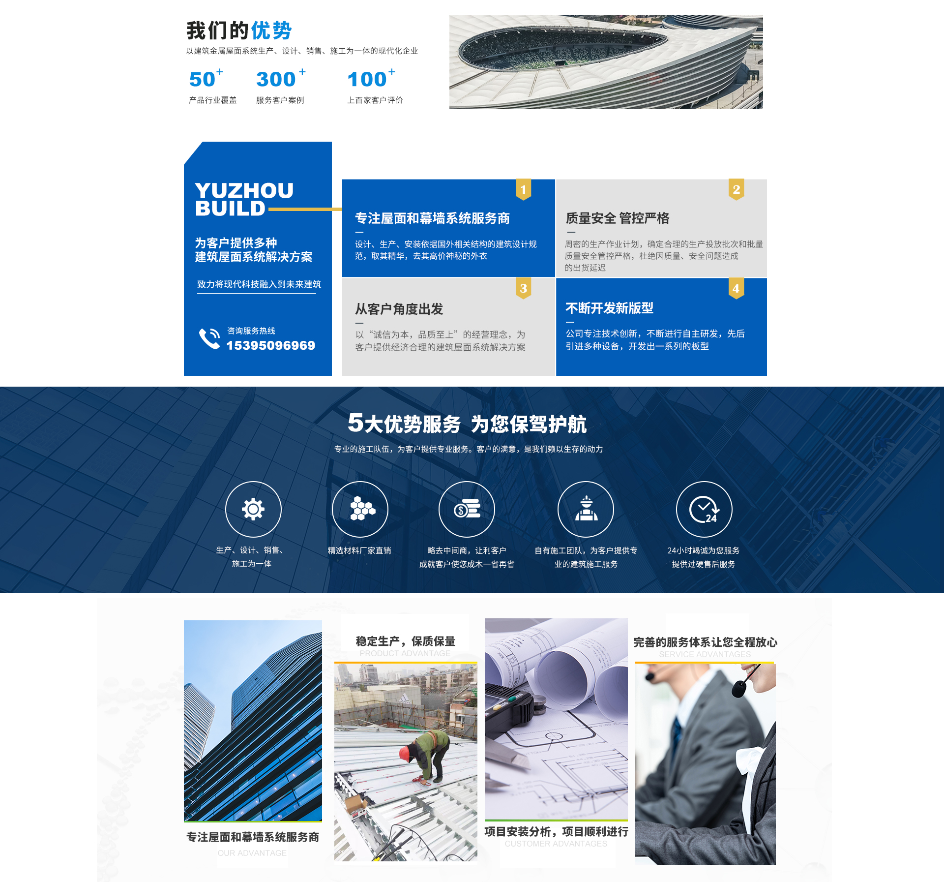 - 宇州金屬(安徽)有限公司是一家以建筑金屬屋面系統生產、設計、銷售、施工為一體的現代化企業。也是華東地區同行業具有實力的專業裝飾企業之一。 公司專注技術創新,不斷進行自主研發,先后引進設備,開發出一系列的板型,為客戶提供多種建筑屋面系統解決方案。公司下轄產品研發、業務拓展、深化設計和工程管理等部門,擁有多年的設計、生產及安裝的成功經驗以及業內先進的專有技術,自...